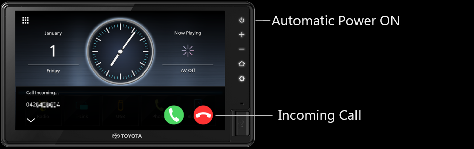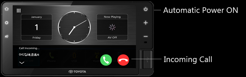 The AVX screen will automatically turns on/display when user receive incoming call even if the AVX is Power OFF.